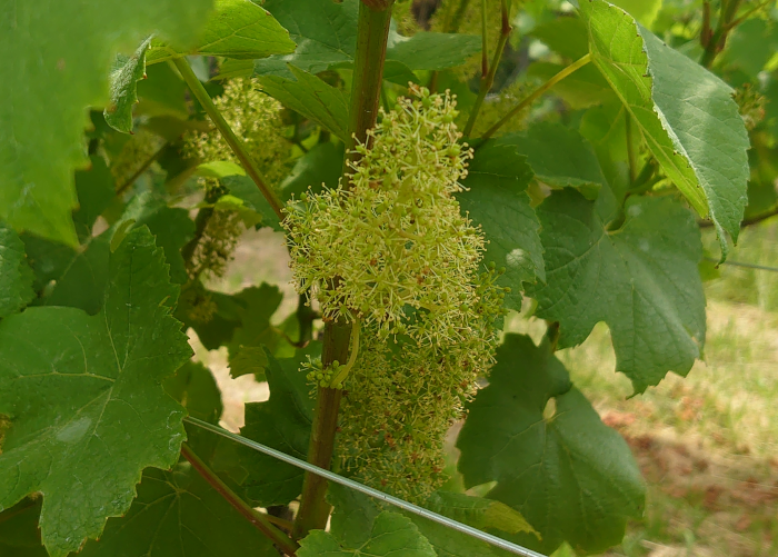 大三島みんなのワイナリーにシャルドネ(葡萄)の花を見に行きました。小さくて薄い黄緑色の綺麗な花が咲いていました。